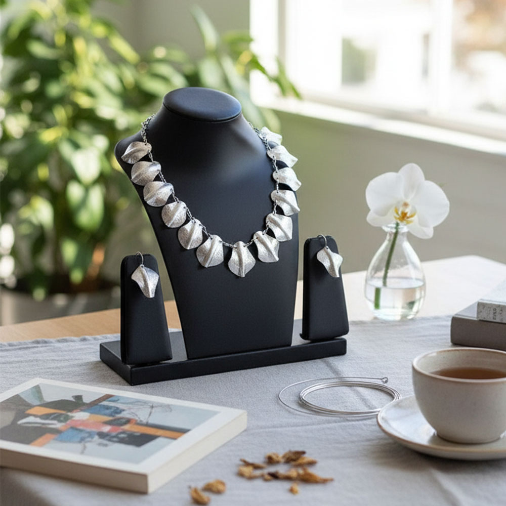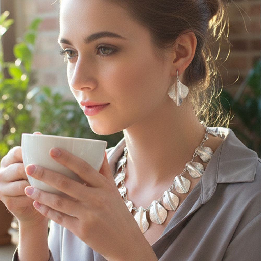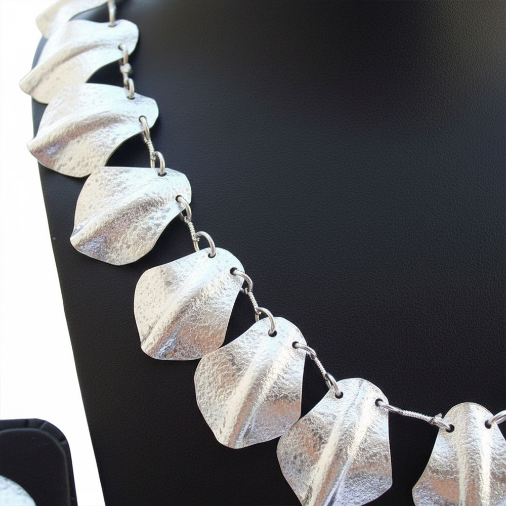 Jewelry By SG Imports Is Known For Its Uniqueness And Fashion Statement. This Necklace is Made of brass And Furnished With a Silver Hammer Finish for Giving It a Contemporary Look. We Have Design Handmade Jewellery And Give It a Royal And Ethnic Touch Which Make It Special Among Others. Classic, Glamorous, And Spectacular Design Will Make You An Instant Center Of Attraction. A Stunning Combination Of Rich Tones And Victorian Glamour, These Necklaces By SG Imports Make A Colorful Statement For Any Occasion and an Elegant Look. Jewelry by SG Imports is Light in Weight