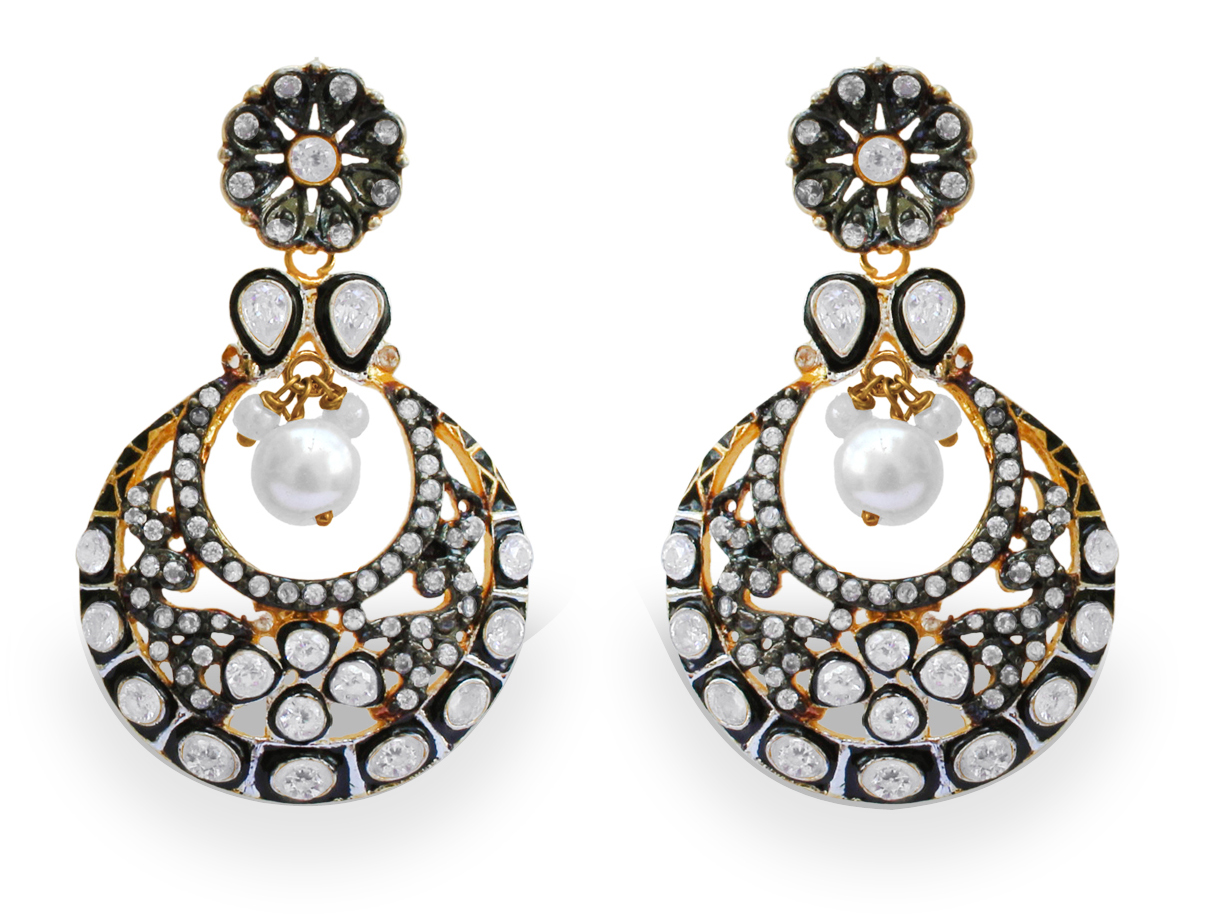 Fashion Cubic Zirconia Brass Drops & Danglers Studded Oxidized Earrings Jewellery For Women ER-1042