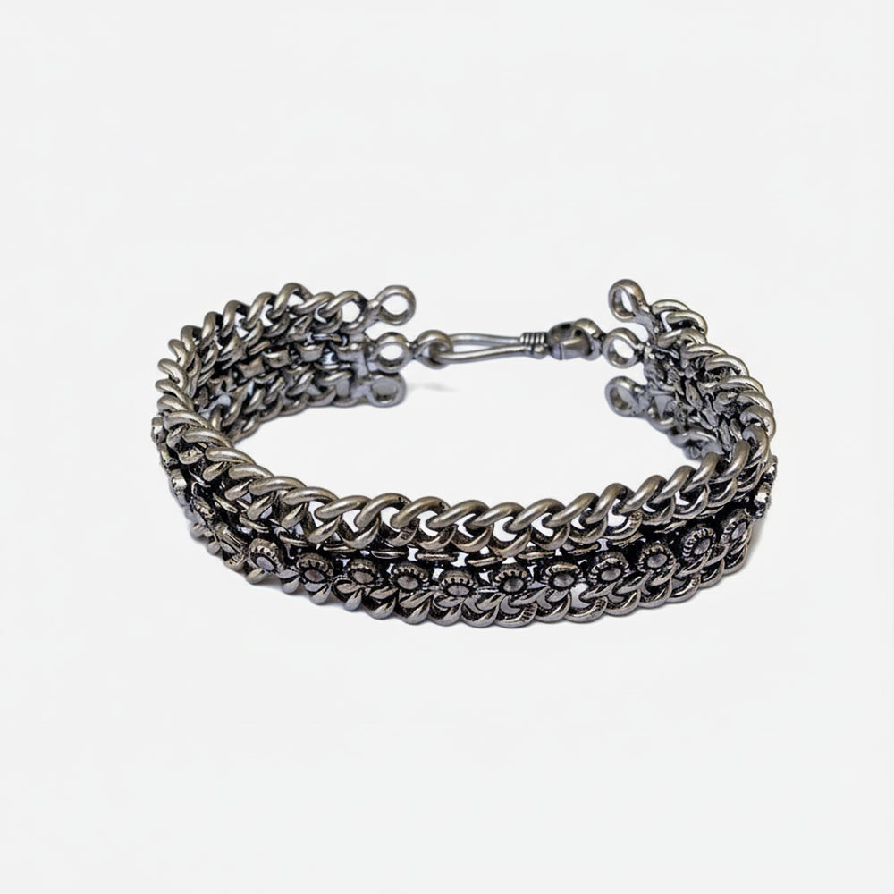 Oxidized Silver Look A Like Ethnic Jewelry Silver Plated Bracelet BG-143