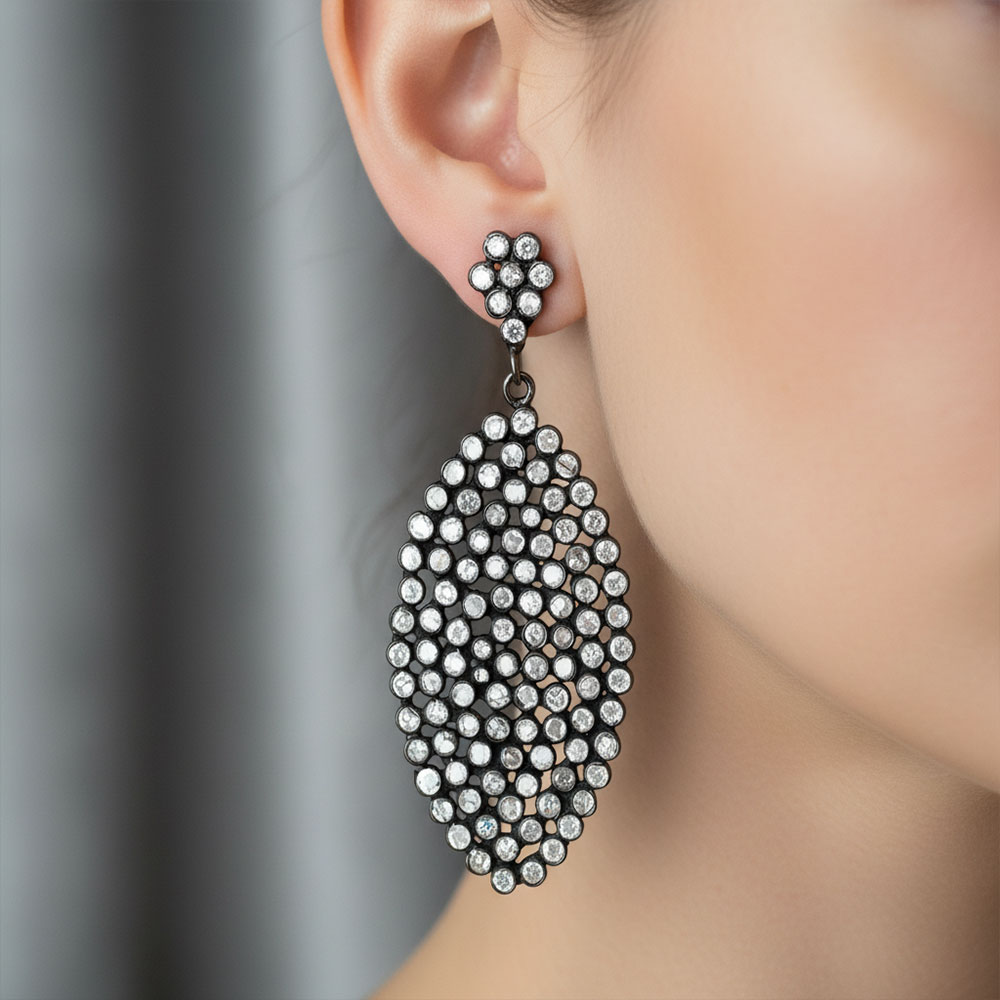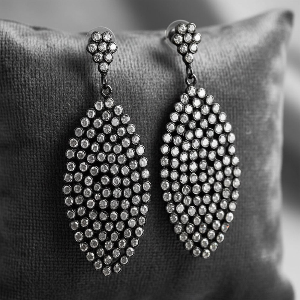 - Stone – Cubic Zircon, Black rhodium plated for make it extra shiny, Fashion statement jewelry, Party wear casual work Earring